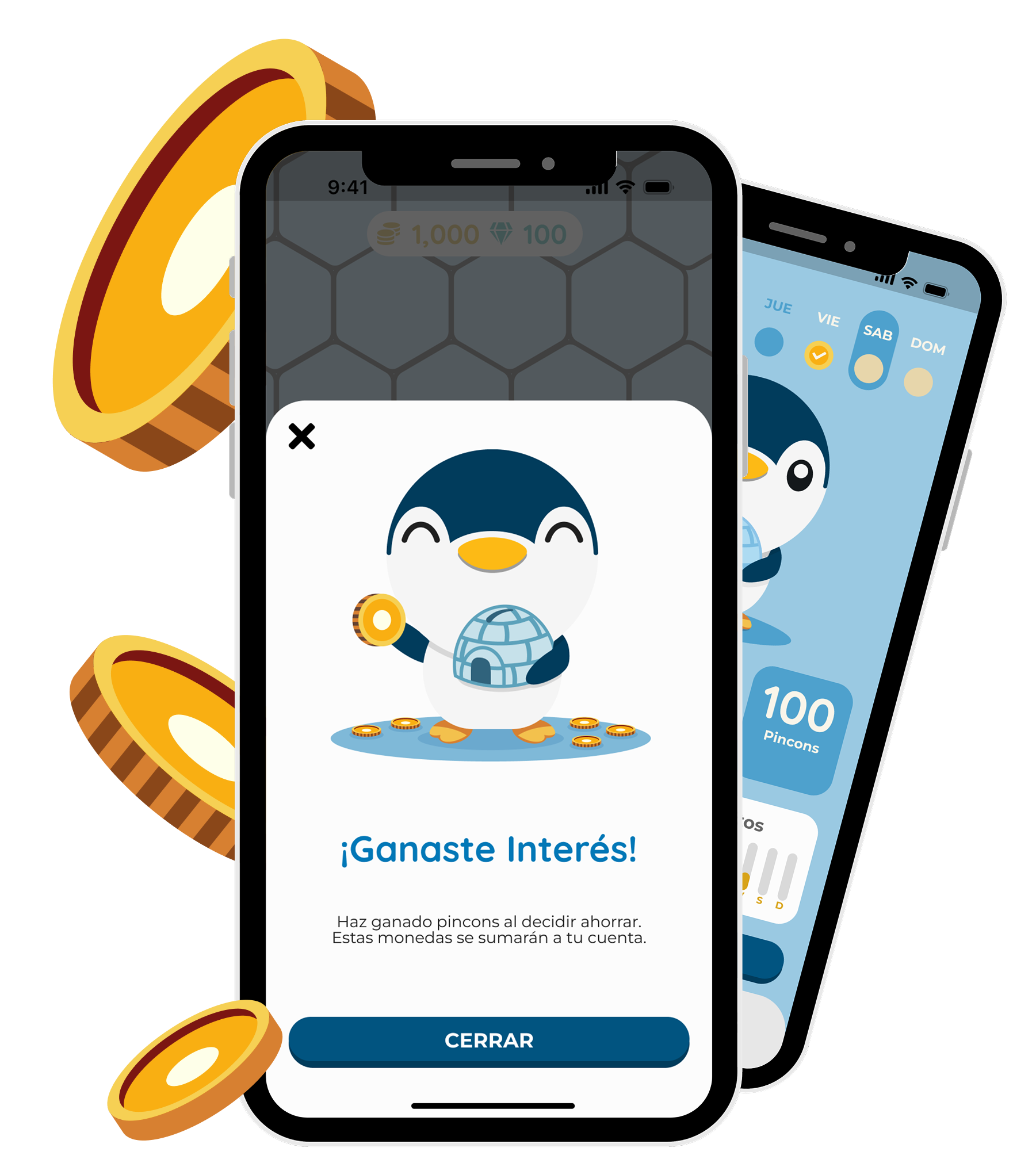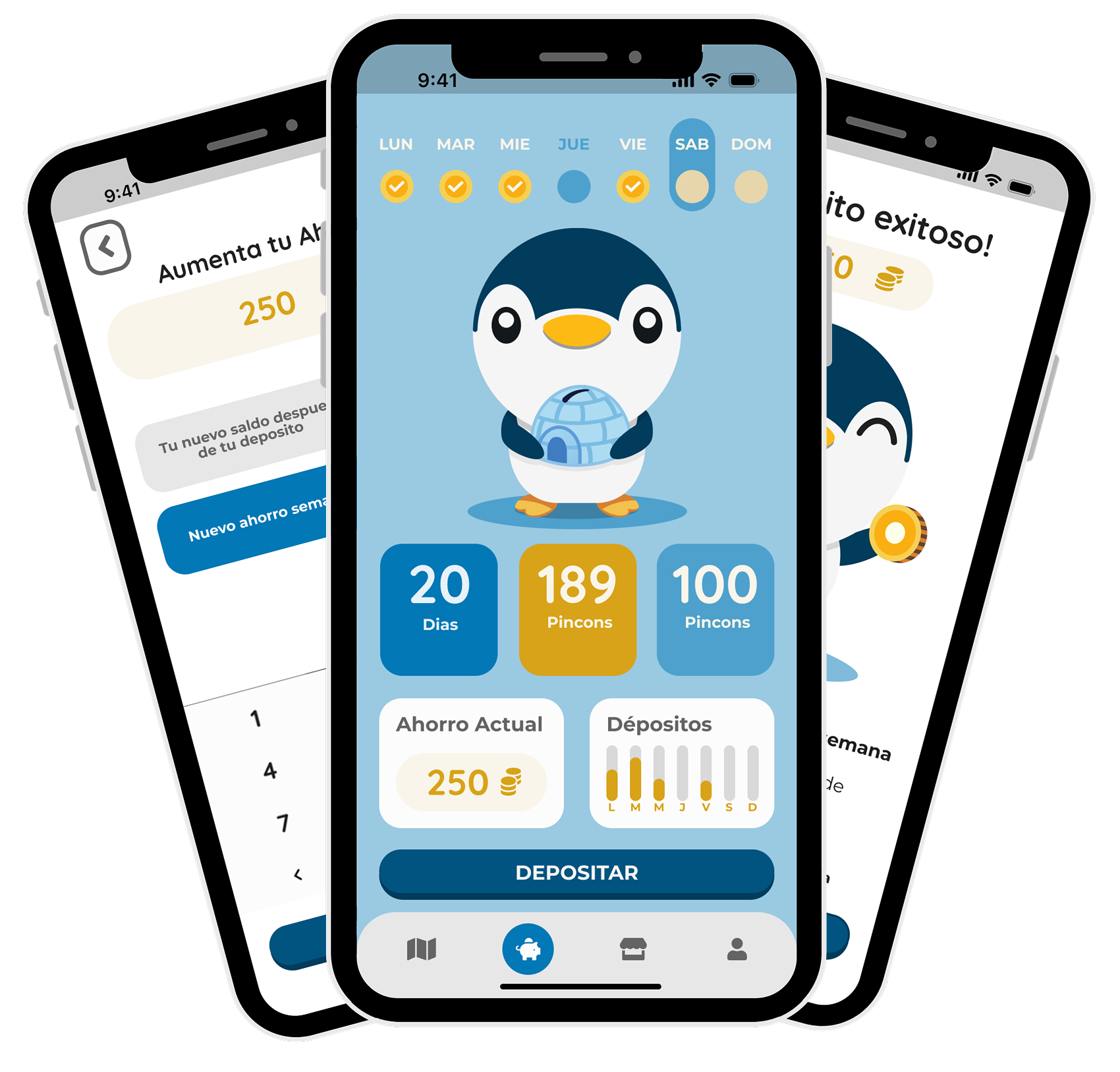 Pin es el pingüino que te acompañará en tu camino financiero, haciendo que aprender sobre dinero sea divertido y lleno de logros.