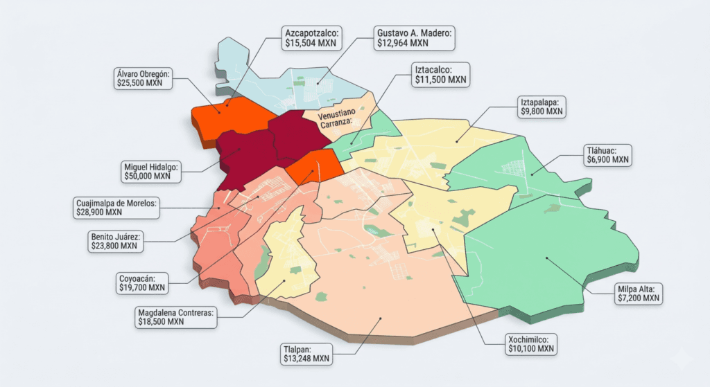 | Miguel Hidalgo | $50,000 MXN | $115,000 MXN | Tinsa México |